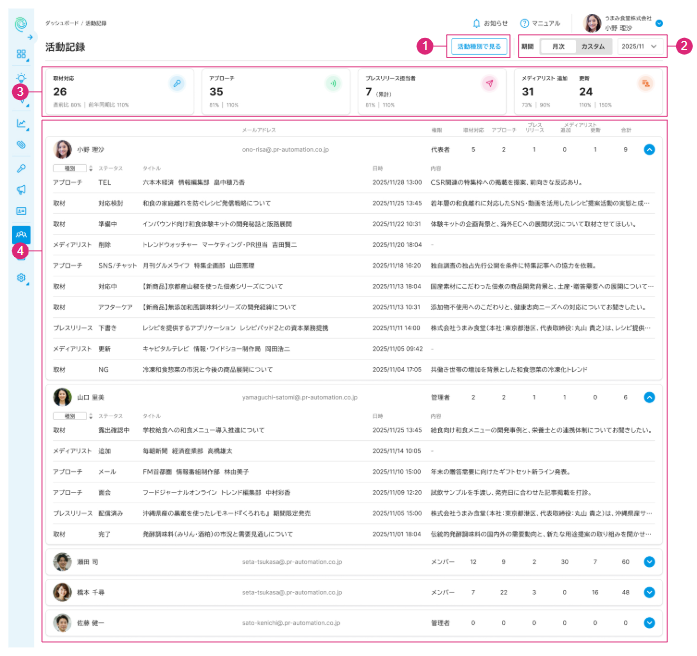 [活動記録]では、いつ・どのメンバーがどのような活動をしたのかを見える化します。