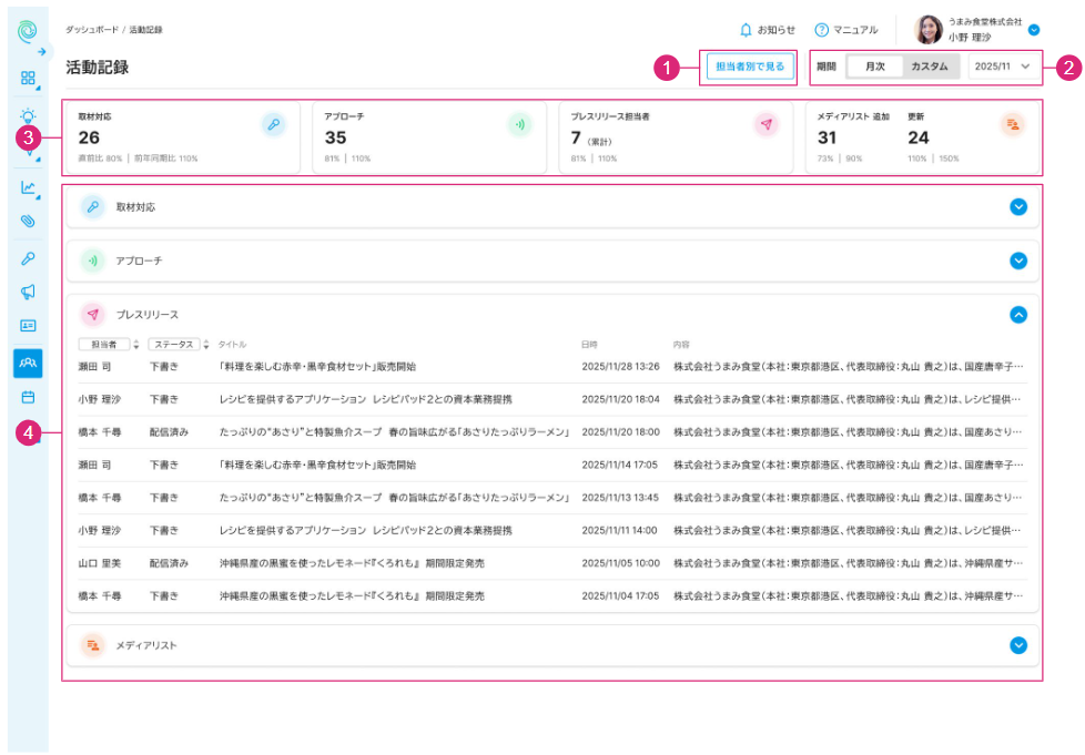 [活動記録] – 担当者別 画面の構成