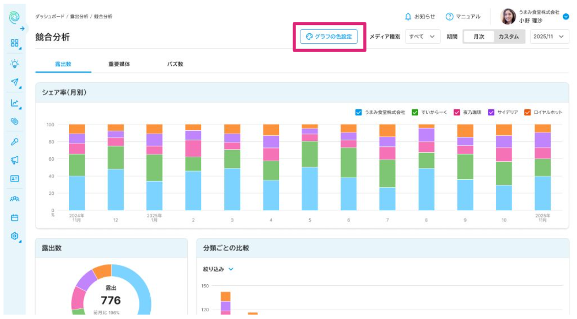 1.[競合分析]上部にある「グラフの色設定」をクリックする