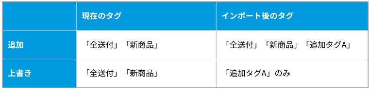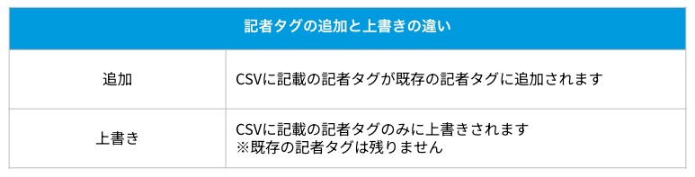 記者タグの追加と上書きは下記の違いがあります。