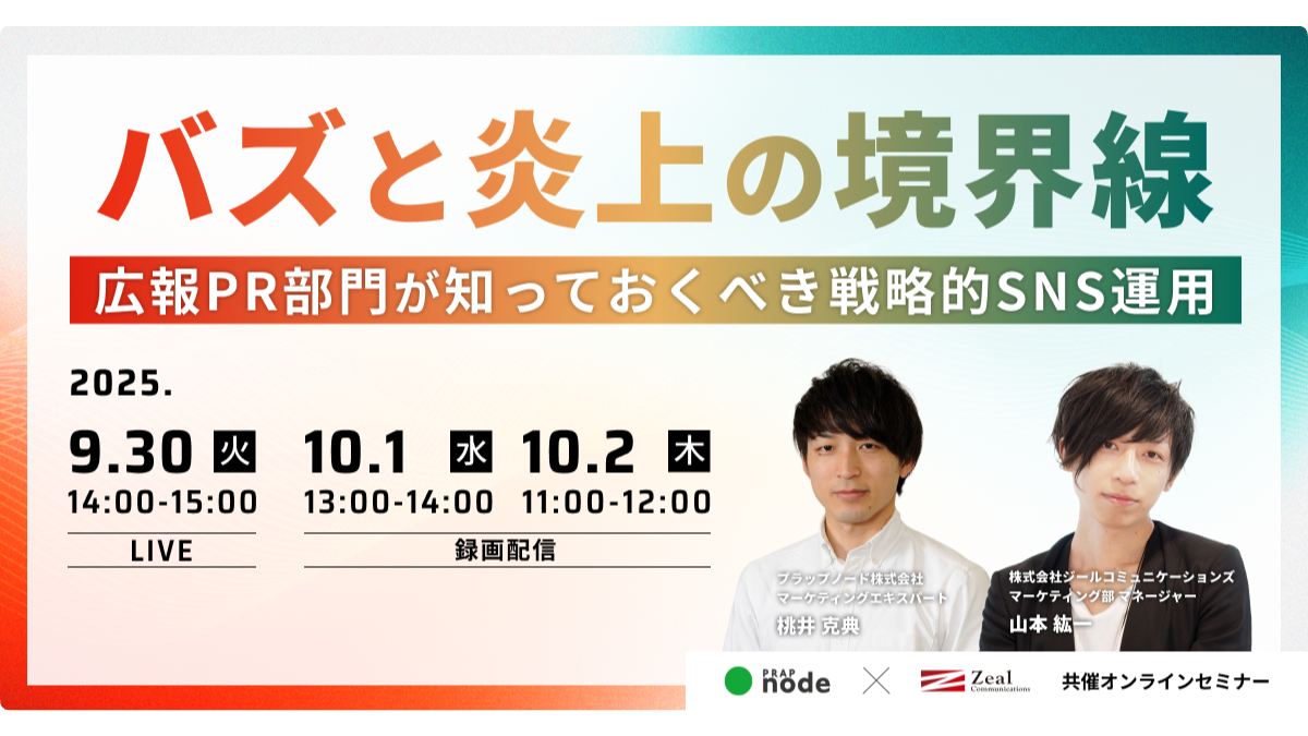 そこで今回のセミナーでは、SNSリスク対策のプロであるジールコミュニケーションズと広報PRに多くの知見を持つプラップノードで「バズと炎上の境界線」を分かりやすく解説。