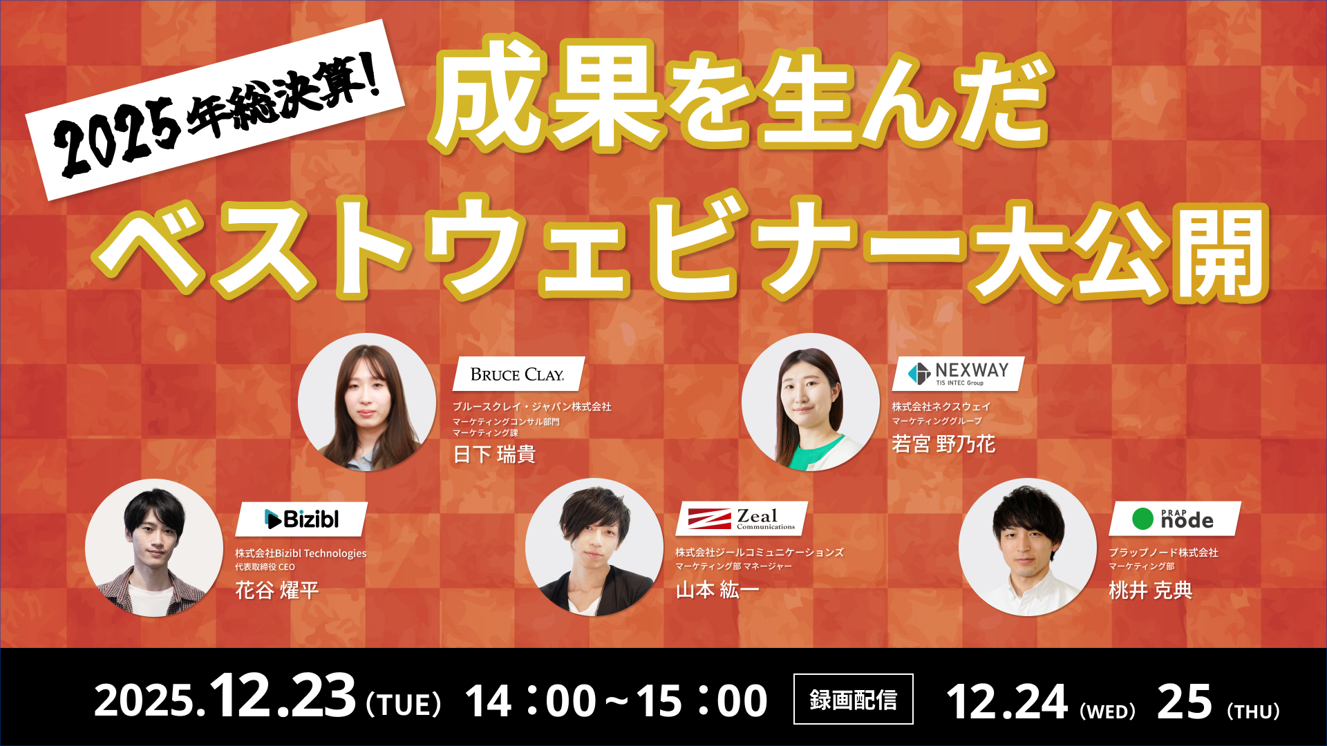 無料オンラインカンファレンス「2025年総決算!成果を生んだベストウェビナー大公開」のご案内です。